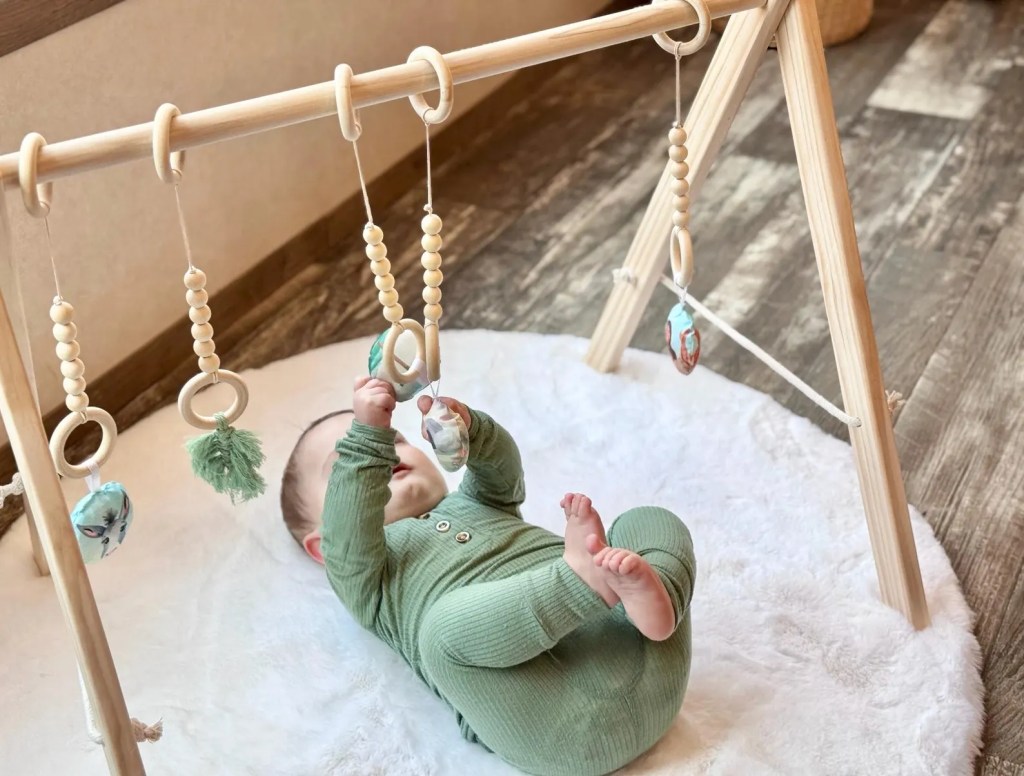 Inspired by the Easter story, this wooden play gym is a perfect way to incorporate faith into your baby’s early learning through sensory exploration, fine motor development, and a love for God from the start!